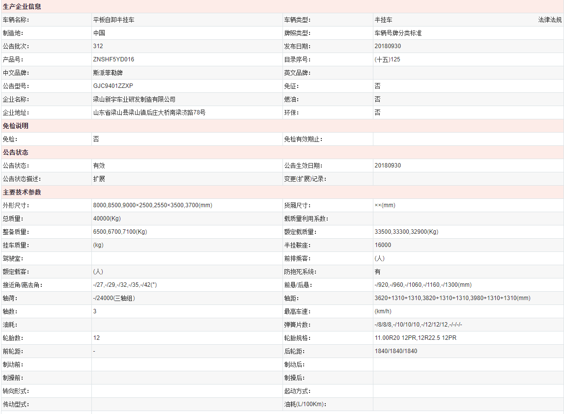 斯派菲勒牌GJC9401ZZXP型平板自卸半掛車,重型平板自卸半掛車